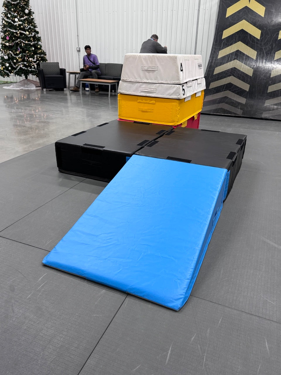 Stackable spotting, training and coaching blocks designed to be stable, strong, and modular that include (4) Rectangles and (2) triangles with each set (current images show (1) triangle, your BLOX will ship with (2))