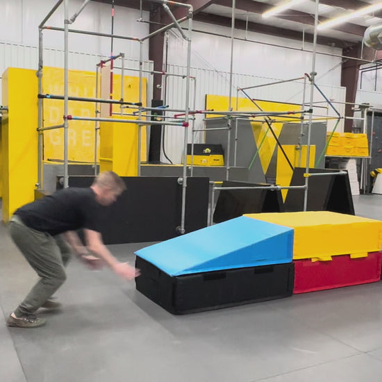 Now you can use PKS BLOX, specifically deigned to aid Parkour style flips and tricks, but also designed with real training facilities in mind - meaning they're easy to move around and extremely versatile. They can be used to train a huge array of Parkour techniques, but they're also perfect for facilities that feature After School or Summer Camp programs, as they're easily integrated into obstacles courses, games, or other non-parkour related activities.